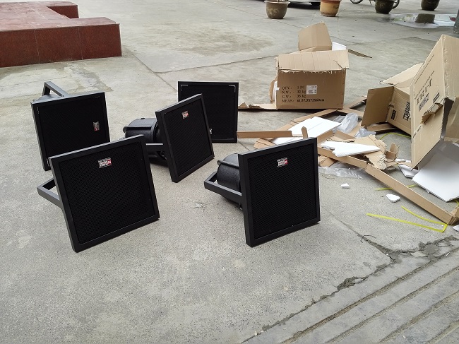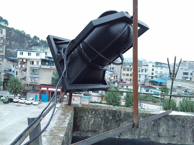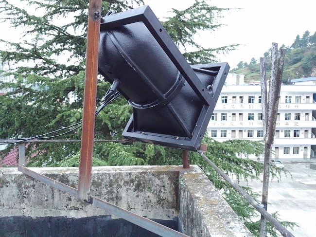 遵义城南中学室外广播,HARMAN远程全频号角,设计在高性价比,低施工费用的基础上得到校方肯定!朝向地面操场反射到天空,不扰民!清晰度完美,不均匀度良好!